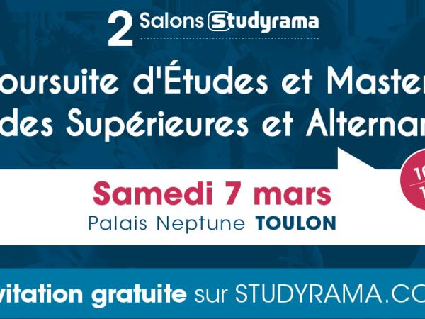 Sur le Salon Studyrama, samedi 7 mars, vous pourrez rencontrer 200 Formations du Bac+2 au Bac+5 (Grandes Ecoles de commerce, ingénieurs, Universités, Ecoles spécialisées, Organismes de préparation aux concours...). Vous pourrez assister à des conférences. Retrouvez le même jour à Toulon : Salon des Etudes Supérieures et de l’Alternance !